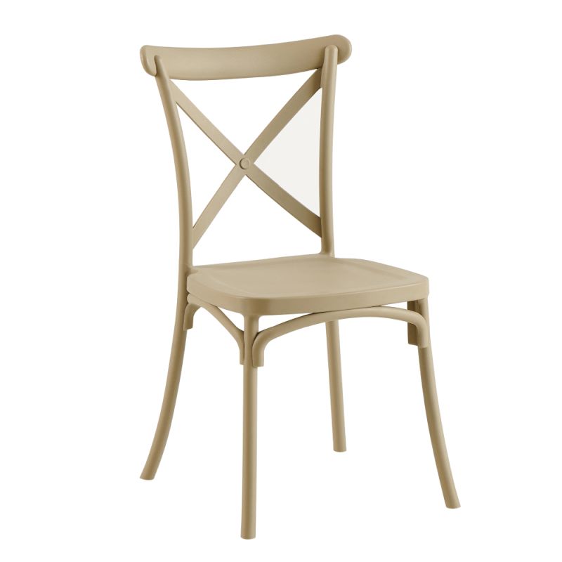 Praktická stohovateľná stolička v sivohnedej farbe, ideálna pre interiéry aj exteriéry. Je skvelou voľbou na terasu, balkón, záhradu alebo firemné akcie vďaka možnosti jednoduchého skladovania a premiestňovania