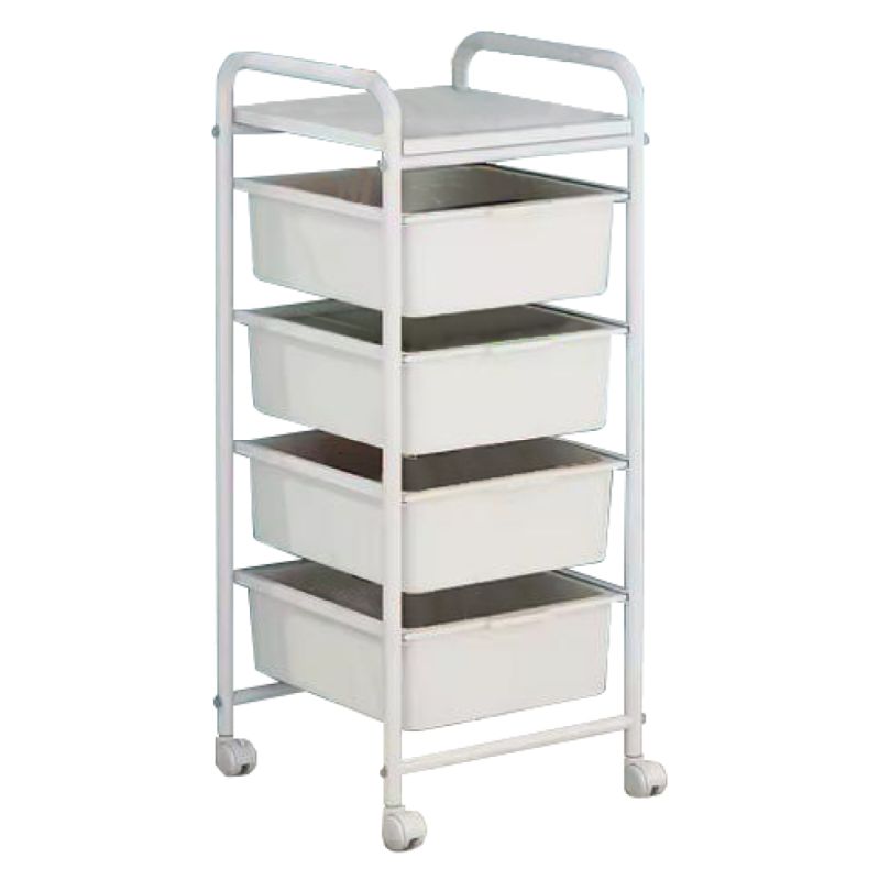 Elegantný pojazdný regál so 4 plastovými boxmi a praktickou hornou policou ponúka všestranné využitie v domácnosti aj kancelárii. Kolieska s brzdou umožňujú jednoduché premiestňovanie aj stabilné umiestnenie na jednom mieste. Skvelý pomocník na organizáciu hračiek, drobností, dokumentov či kuchynských potrieb