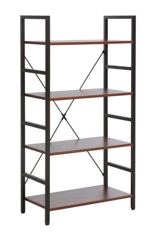 Policový kovový regál R4, čierny mat/tmavý orech
