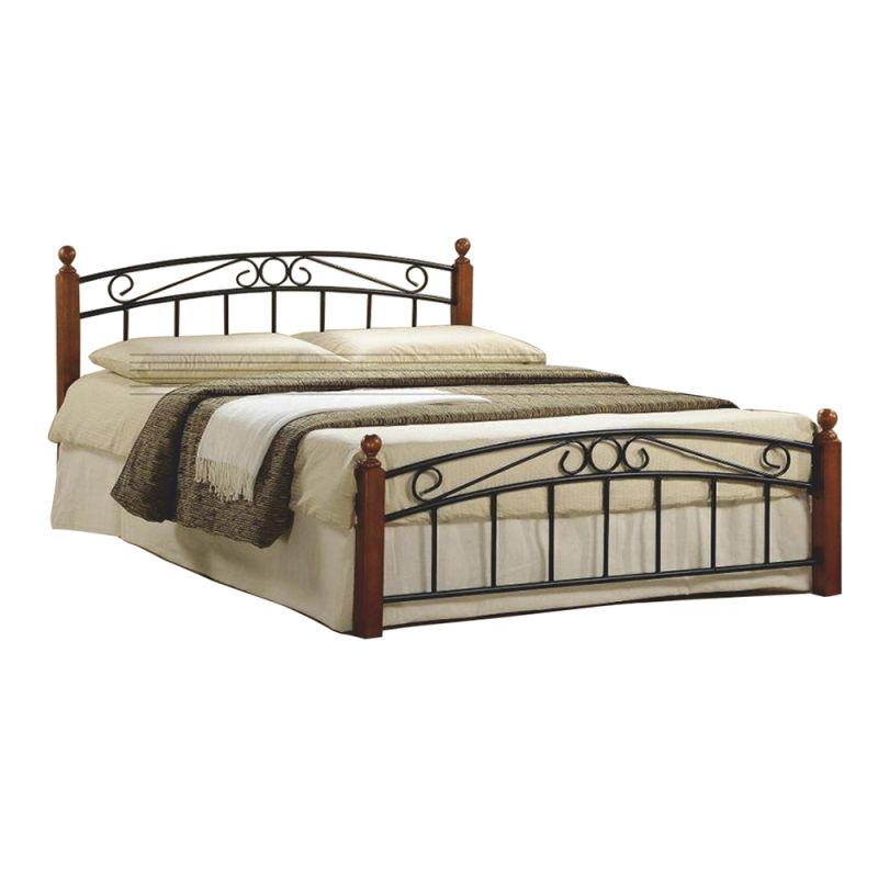 Posteľ 140x200 s roštom, drevo čerešňa-čierny kov