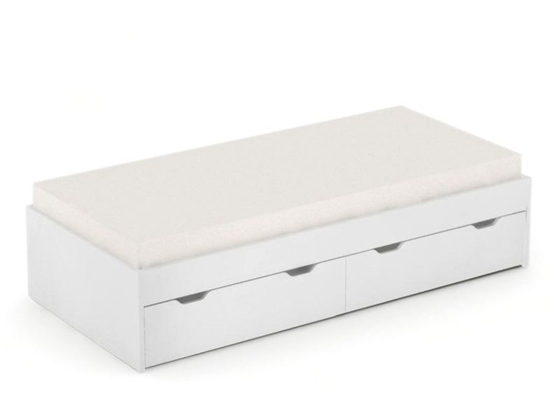 Praktická jednolôžková posteľ 90x200 cm s dvoma zásuvkami pre úložný priestor. Posteľ má klasický dizajn bez čiel, vhodná pre deti aj dospelých, s pevnou konštrukciou z DTD dosky hrúbky 25 mm a ABS hranou 2 mm.