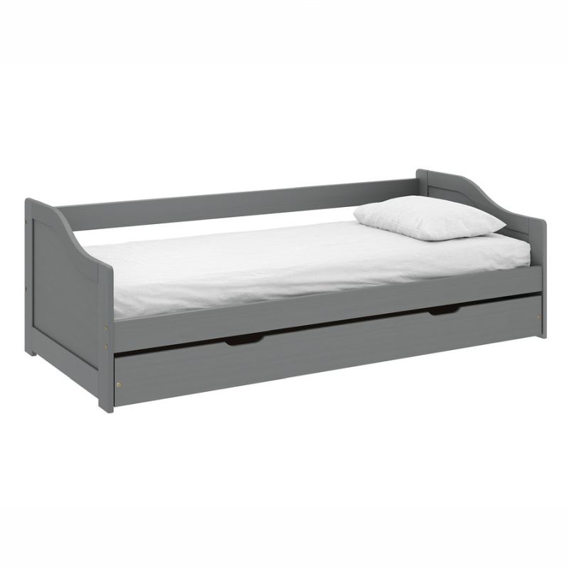Posteľ s výsuvnou prístelkou z borovicového dreva, sivá
