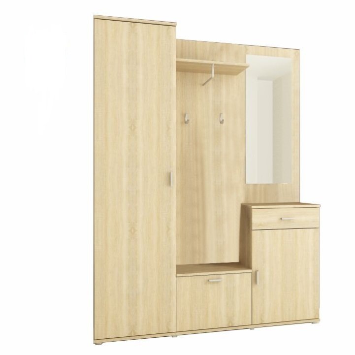 Praktická predsieňová zostava v obľúbenom prevedení dub sonoma, vyrobená na Slovensku z kvalitnej laminovanej drevotriesky. Ponúka dostatok úložného priestoru v podobe troch skriniek vrátane jednej so šuplíkom, vešiakovej steny a elegantného zrkadla