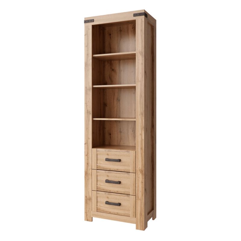 Regál v teplom odtieni dub wotan je vyrobený z kvalitnej laminovanej drevotriesky s MDF dvierkami, ktoré dopĺňajú jeho elegantný vzhľad. Tento praktický a štýlový regál poskytuje dostatok úložného priestoru v kombinácii otvorených políc a troch šuplíkov