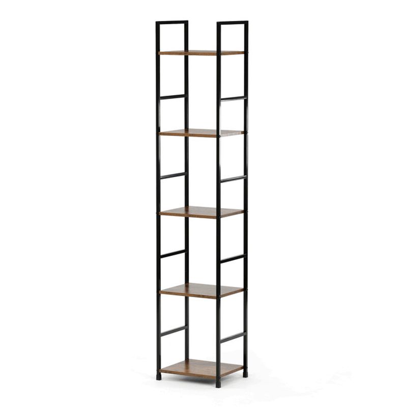 Praktický regál s piatimi policami v industriálnom štýle ponúka dostatok úložného priestoru a zároveň pôsobí ako štýlový doplnok interiéru. Kombinácia MDF dosiek v dekore starého dreva a čiernej kovovej konštrukcie vytvára moderný a nadčasový vzhľad vhodný do obývačky, pracovne aj kancelárie.