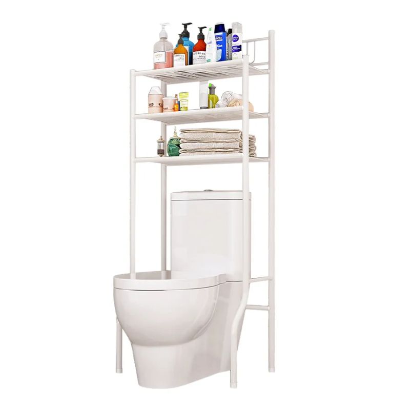 Praktický regál nad toaletou, ktorý efektívne šetrí miesto a poskytuje dodatočný úložný priestor. Ponúka tri police, ktoré sú ideálne na uloženie uterákov či hygienických potrieb. Medzera medzi policami je 19 cm a výška od zeme po prvú policu je 95 cm, čo umožňuje pohodlné využitie priestoru nad WC. Stabilitu regálu zabezpečuje kovová konštrukcia v bielom prevedení
