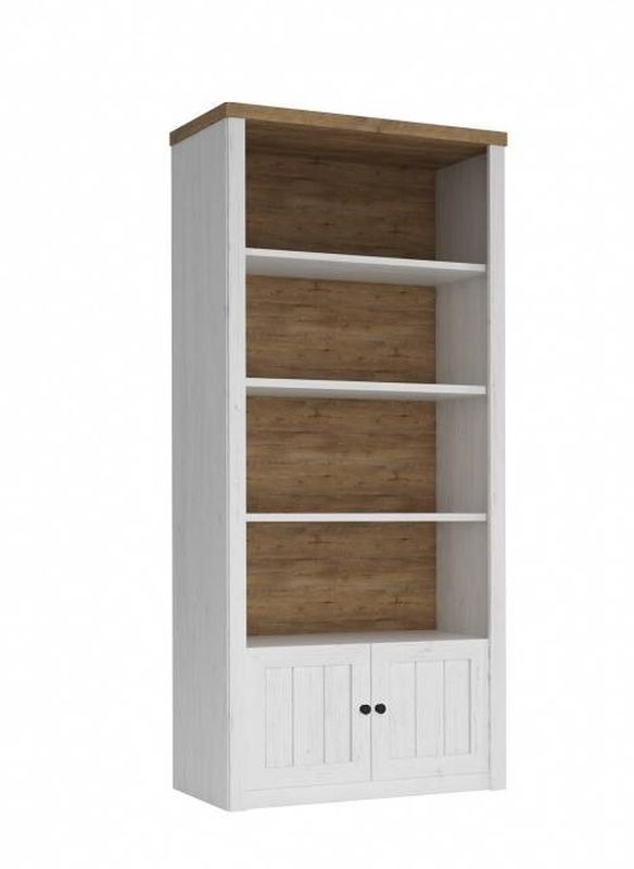 Dizajnové Prvky: Regál R1 kombinuje svetlý odtieň sosny Andersen s tmavým Lefkas Ciemnym, čím vytvára moderný a teplý vzhľad. Tento kontrast farieb a textúr robí regál výrazným a príťažlivým doplnkom v každej miestnosti.