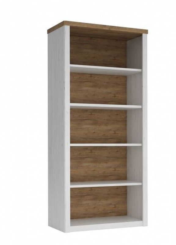 Dizajnové Prvky: Kontrast medzi svetlým tónom sosny Andersen a tmavším Lefkas Ciemnym dodáva regálu výrazný a príťažlivý vzhľad. Jeho štýlový dizajn sa ľahko hodí do širokej škály interiérových štýlov, čím pridáva moderný a teplý charakter do vašej miestnosti.