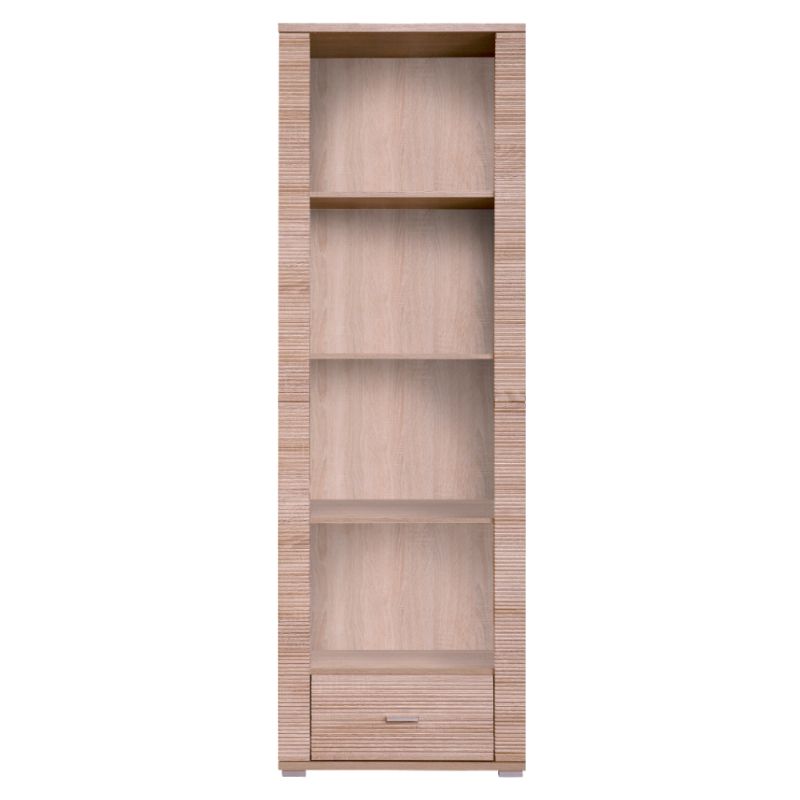 Regál úzky je ideálny na zariadenie obývacích izieb, spální alebo pracovných priestorov. Vyrobený z kvalitnej DTD laminovanej, regál ponúka praktické riešenie pre ukladanie vecí s moderným dizajnom. S jedným šuplíkom a tromi policami poskytuje dostatok úložného priestoru.