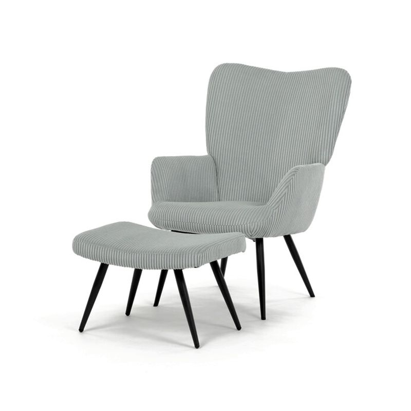 Menčestrová látka dodáva kreslu príjemnú textúru a vizuálnu hĺbku, ktorá sa hodí do moderných aj klasických interiérov. Súčasťou je praktický taburet na pohodlné opretie nôh, ktorý zdieľa rovnaký dizajn a materiál ako kreslo. Kreslo nie je otočné ani rozkladacie, čo podčiarkuje jeho jednoduchosť a funkčnosť.