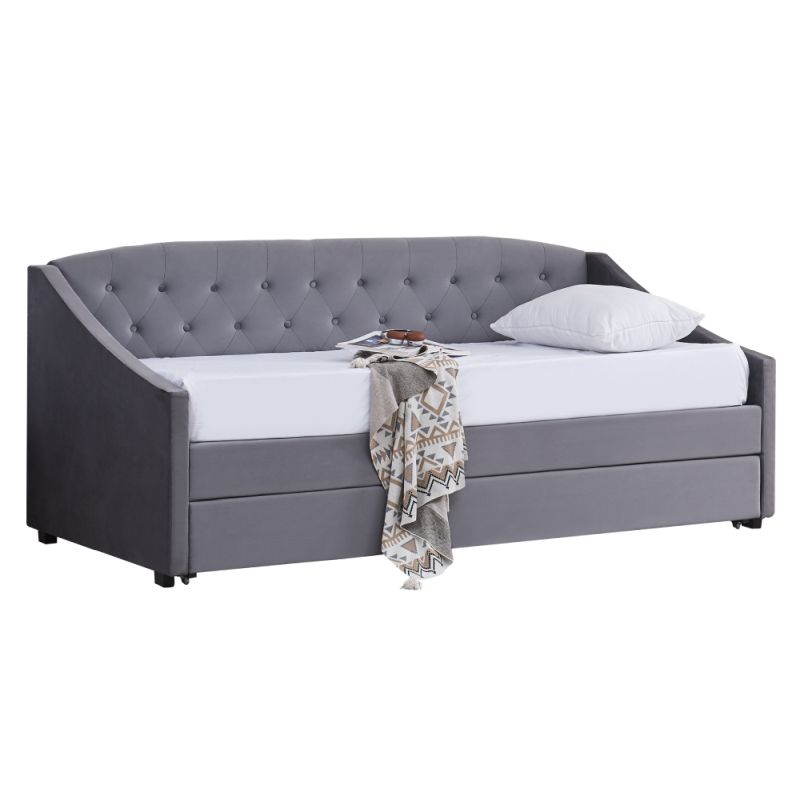 Elegantná rozkladacia posteľ s prístelkou predstavuje praktické a štýlové riešenie do domácnosti. Čalúnená luxusnou Velvet látkou v elegantnej sivej farbe, ktorá prináša príjemný pocit na dotyk. Moderný dizajn podčiarkuje dekoratívne prešívanie na čele postele. Výsuvná prístelka na kolieskach šetrí priestor a ponúka plnohodnotné miesto na spanie, ideálne pre deti, hostí alebo menšie miestnosti. Posteľ je vybavená lamelovým roštom a dodáva sa bez matraca (odporúčame 90x200 cm)
