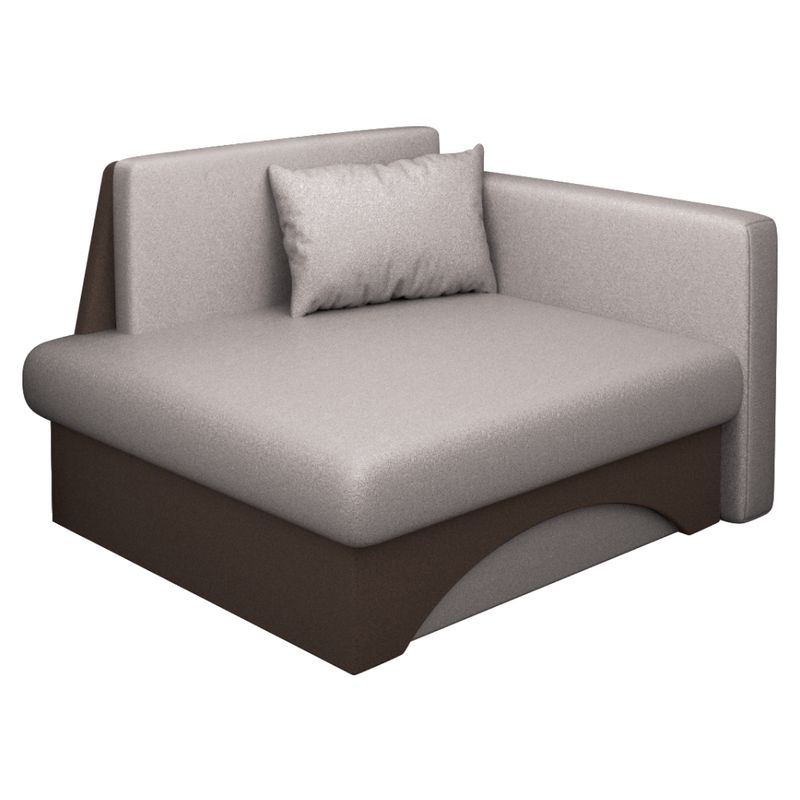Rozkladacie kreslo s úložným priestorom v elegantnej kombinácii béžovosivej Taupe a hnedej farby ponúka komfort a praktickosť. Slúži ako pohodlné kreslo aj ako plnohodnotné lôžko pre oddych alebo nečakaných hostí. Vďaka univerzálnemu prevedeniu ho môžete rozložiť na ľavú alebo pravú stranu podľa potreby. Čalúnené kvalitnou látkou Malmo s výplňou z pur peny T28, doplnené vankúšom pre väčšie pohodlie