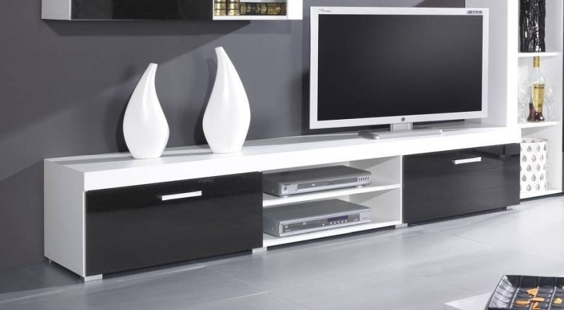 Moderný RTV stolík 200 v bielom matnom a čiernom lesklom prevedení je skvelou voľbou pre tých, ktorí hľadajú štýlový, ale zároveň praktický a funkčný kus nábytku pre svoju obývačku. Jeho sofistikovaný dizajn a vysoká funkčnosť sú ideálne pre elegantné a moderné domovy.