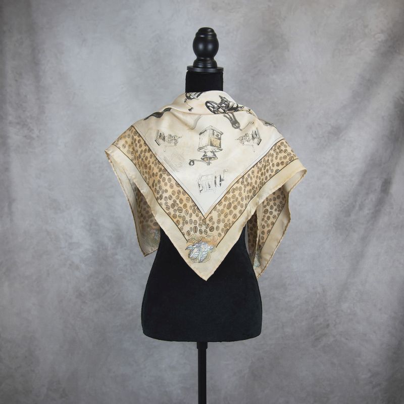 Ručne maľovaná hodvábna šatka KÁVA_2, 90 x 90cm, Vyrobené na SlovenskuSKLADOM75,00 €/ ks60,98 € bez DPH