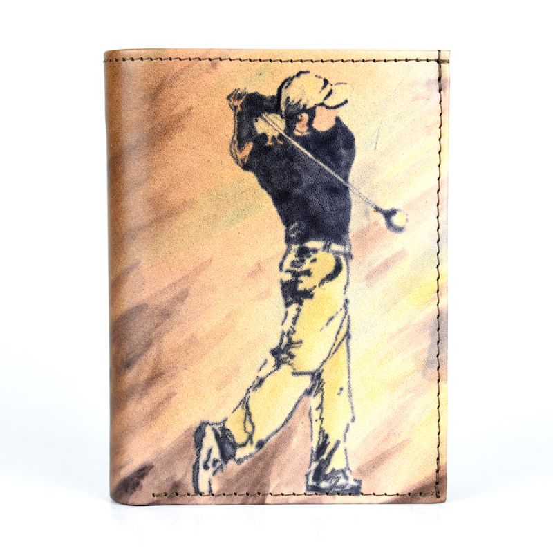 Ručne maľovaná kožená peňaženka 8560 s motívom Golfistu