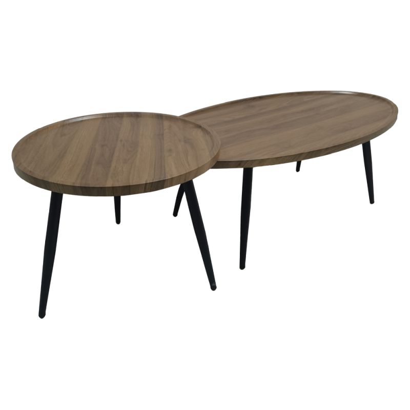 Vrchné dosky z MDF s odolnou PVC fóliou v dekore dubu prinášajú do interiéru teplo a prirodzený vzhľad, zatiaľ čo pevné kovové nohy zabezpečujú stabilitu a dlhú životnosť. Väčší stolík ponúka dostatok priestoru na každodenné používanie, zatiaľ čo menší poslúži ako praktický doplnok na dekorácie alebo drobnosti. Vďaka rozdielnej výške ich môžete jednoducho zasunúť do seba a vytvoriť tak atraktívny a funkčný celok, ktorý okamžite oživí vašu obývačku.