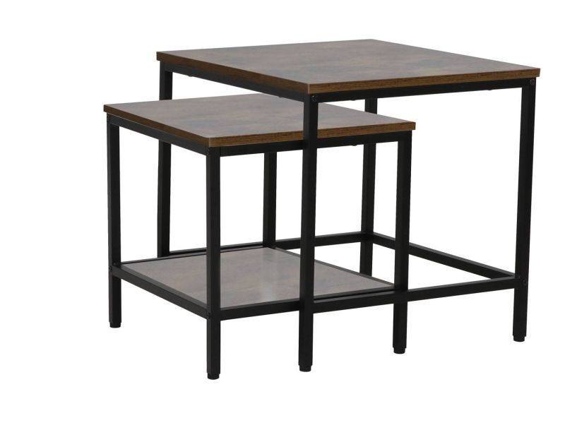 Tento set konferenčných stolíkov v odtieni čierneho matu a rustikálnej hnedej farby kombinuje moderný vzhľad s praktickosťou. Sada obsahuje dva stolíky, ktorých vrchné dosky sú vyrobené z kvalitnej laminovanej dosky, zaručujúcej dlhodobú odolnosť a pevnosť. Kovové podnože pridávajú stolíkom stabilitu a trvanlivosť. Stolíky majú rozdielne rozmery - menší stolík má šírku, výšku a hĺbku 40 cm, zatiaľ čo väčší stolík má rozmery 48 cm, čo umožňuje ich flexibilné použitie a umiestnenie v rôznych častiach miestnosti.