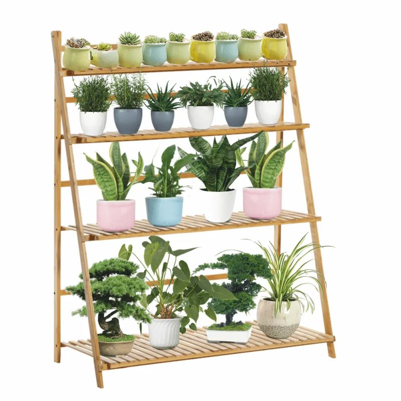 Praktický skladací regál z bambusu s štvoricou políc rôznej hĺbky, ideálny na bylinky či črepníkové kvety. Prírodné bambusové prevedenie skvele zapadne do akéhokoľvek priestoru, či už v interiéri alebo exteriéri