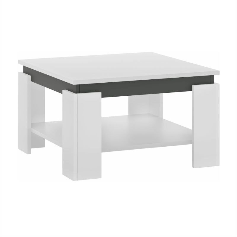 Konferenčný stolík s moderným dizajnom v kombinácii bielej a grafitovej farby je praktickým a elegantným doplnkom do každého interiéru. S otvoreným úložným priestorom je ideálny na uskladnenie kníh, časopisov alebo ovládačov. Vyrobený z laminovanej DTD a pokrytý ABS hranami, zaručuje odolnosť a dlhú životnosť