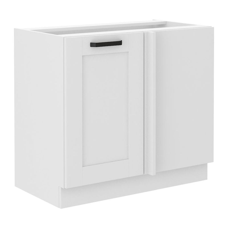 Skrinka je určená do rohu rohovej kuchynskej linky. Jej čistá šírka je 90cm, inštaluje sa však o 15cm ďalej od steny, pretože sa počíta s osadením pracovnej dosky