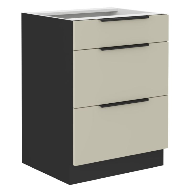 Spodná skrinka, cashmere-čierna, 60 D 3S BB, 3x zásuvka