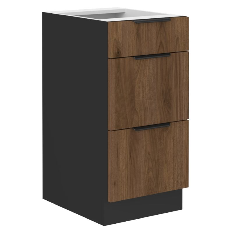 Spodná skrinka, orech okapi-čierna, 40 D 3S BB, 3x zásuvka