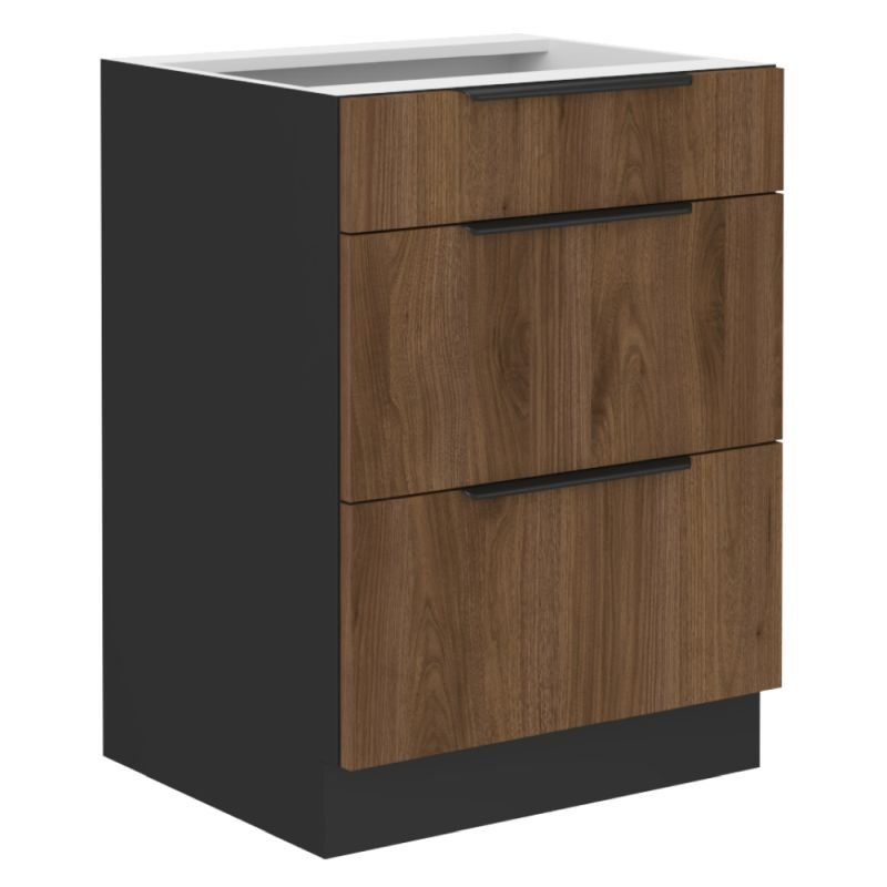 Spodná skrinka, orech okapi-čierna, 60 D 3S BB, 3x zásuvka