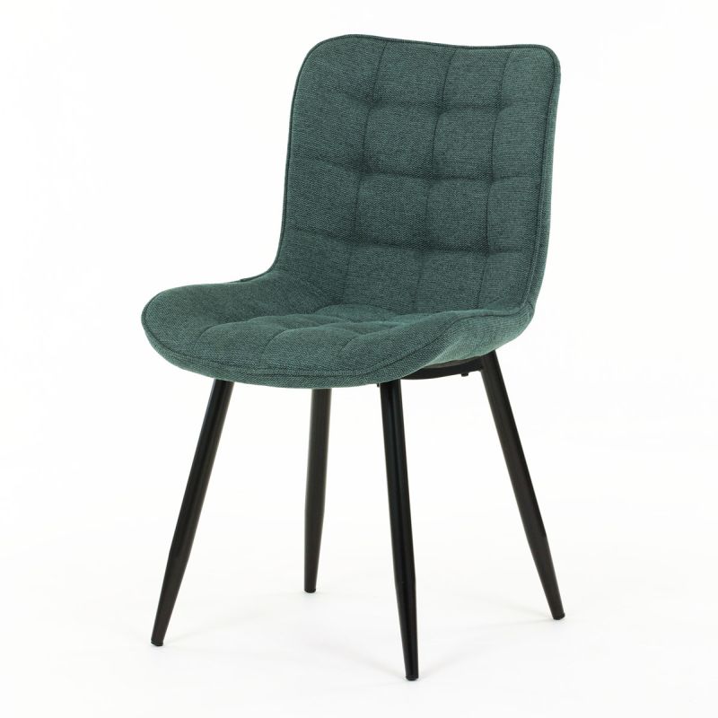 Táto moderná jedálenská stolička s elegantným dizajnom je čalúnená zelenou látkou, ktorá je príjemná na dotyk a vizuálne príťažlivá. Prešitie na látke dodáva stoličke šmrnc. Tvarovaná kostra a kvalitné polstrovanie poskytujú vysoký komfort pri sedení. Kovové nohy v matnej čiernej farbe sú stabilné a vybavené plastovými klzákmi na ochranu podlahy.