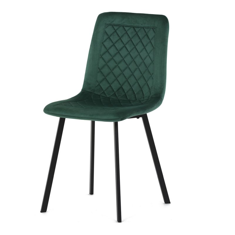 Obohaťte svoju jedáleň touto luxusnou jedálenskou stoličkou, ktorá spája eleganciu s pohodlím. Zamatové čalúnenie v bohatej zelenej farbe a matný čierny kovový rám poskytujú kombináciu, ktorá je nielen esteticky príťažlivá, ale aj praktická a odolná.