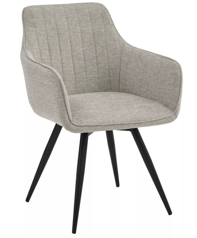 Elegantná jedálenská stolička s čiernou kovovou konštrukciou a čalúnením v sivej látke kombinuje moderný dizajn s výnimočným pohodlím. Vďaka jemnému povrchu látky a kvalitnému spracovaniu je ideálnou voľbou do štýlovej jedálne