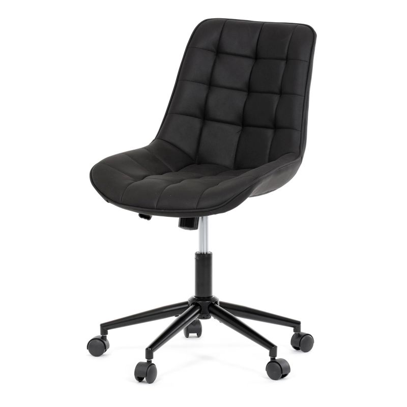 Stolička kancelárska, čierna látka v dekore brúsenej kože, čierny kovový kríž