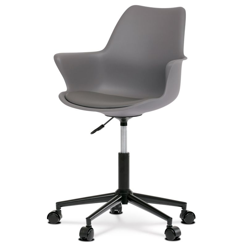 Kancelárska stolička so šedou plastovou škrupinou je ideálnou voľbou pre moderné pracovné prostredie. Vyniká svojím sofistikovaným dizajnom, ktorý kombinuje eleganciu a funkčnosť. Plastová škrupina v sivom odtieni spolu s čiernymi robustnými nohami vytvára vizuálne príťažlivý kontrast, zatiaľ čo krížová základňa zaisťuje stabilitu a podporu.