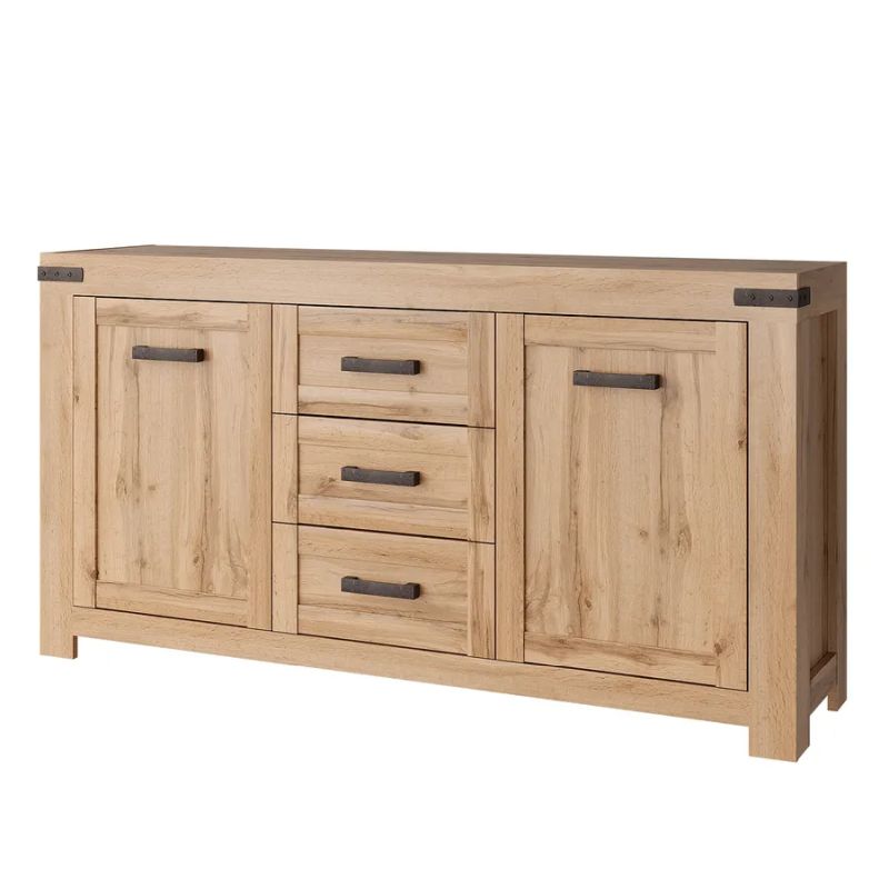 Štýlová komoda, 2x dvierka a 3x zásuvka, dub wotan