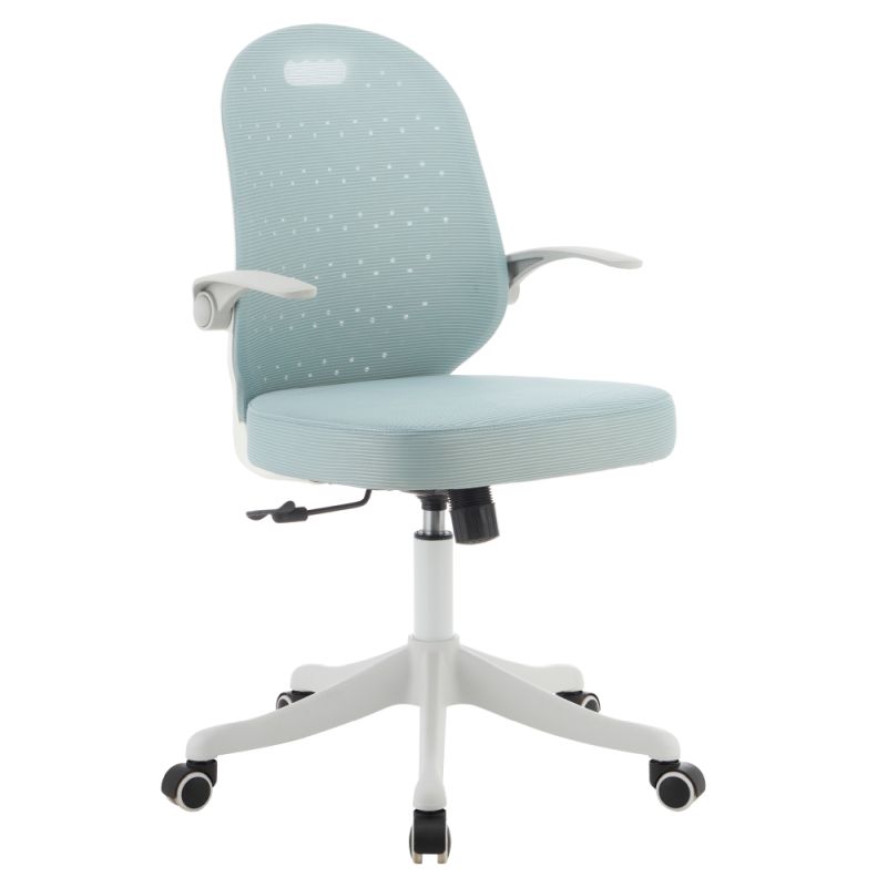 Štýlová otočná stolička v kombinácii neomintovej sieťoviny, bieleho plastu a sivých detailov je ideálnym riešením pre detskú alebo študentskú izbu. Spája moderný dizajn, pohodlie a praktické funkcie, ktoré ocení každý mladý používateľ.