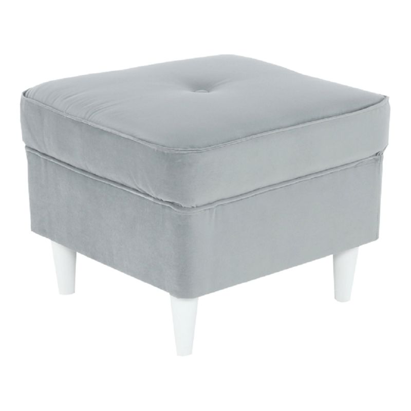Nadčasový taburet v svetlosivom odtieni látky Trinity s drevenými nožičkami v bielej farbe je elegantným a praktickým doplnkom každej domácnosti. Poskytuje pohodlie aj vizuálny akcent do interiéru
