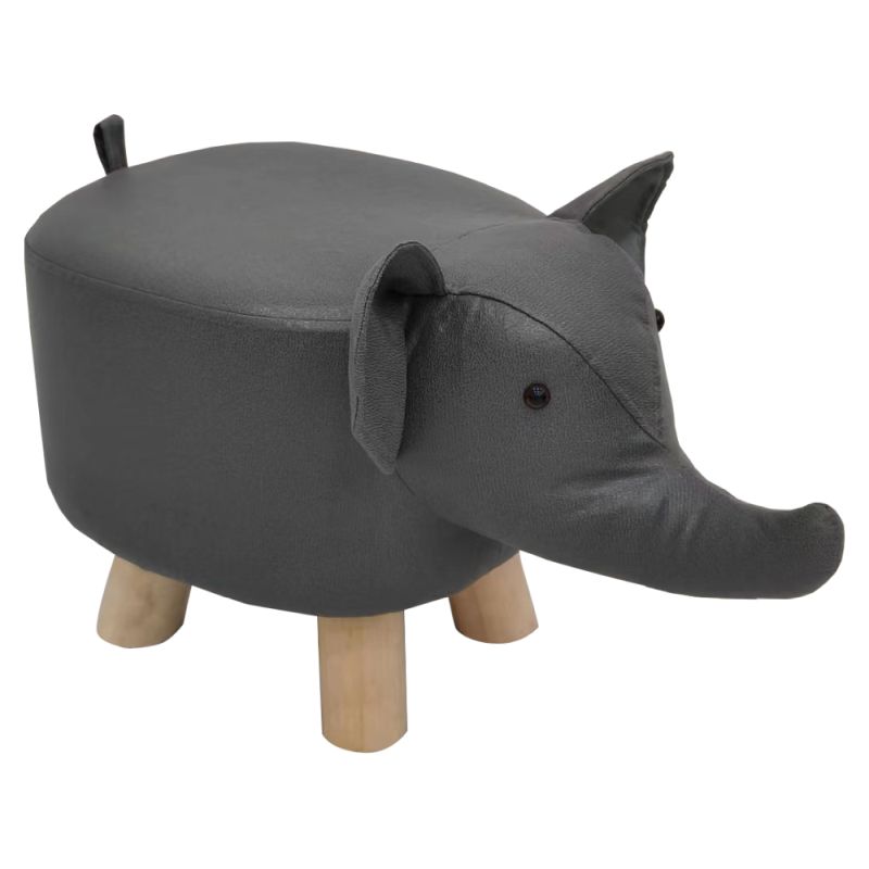 Taburet v tvare sloníka je praktický a štýlový doplnok, ktorý okamžite zaujme pozornosť. Spojuje funkčnosť, pohodlie a hravý dizajn, ktorý poteší najmä deti. Čalúnený je sivou látkou s odolnosťou 65 000 oderov podľa testu Martindale, a stabilitu mu zabezpečujú masívne nožičky z borovicového dreva v prírodnom prevedení. Skvele poslúži ako miesto na sedenie aj hranie