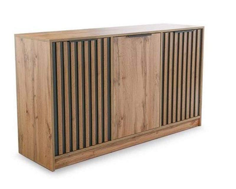 v dekore dub Wotan s čiernymi detailmi je ideálnym riešením pre spálne, obývacie izby alebo chodby, kde oceníte dostatok úložného priestoru. Moderný vzhľad komody dopĺňajú lamely na dvierkach, ktoré dodávajú nadčasový a štýlový efekt.