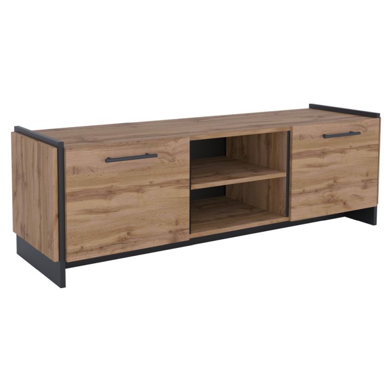 TV stolík 2D, 2x skrinka, dub wotan-čierna