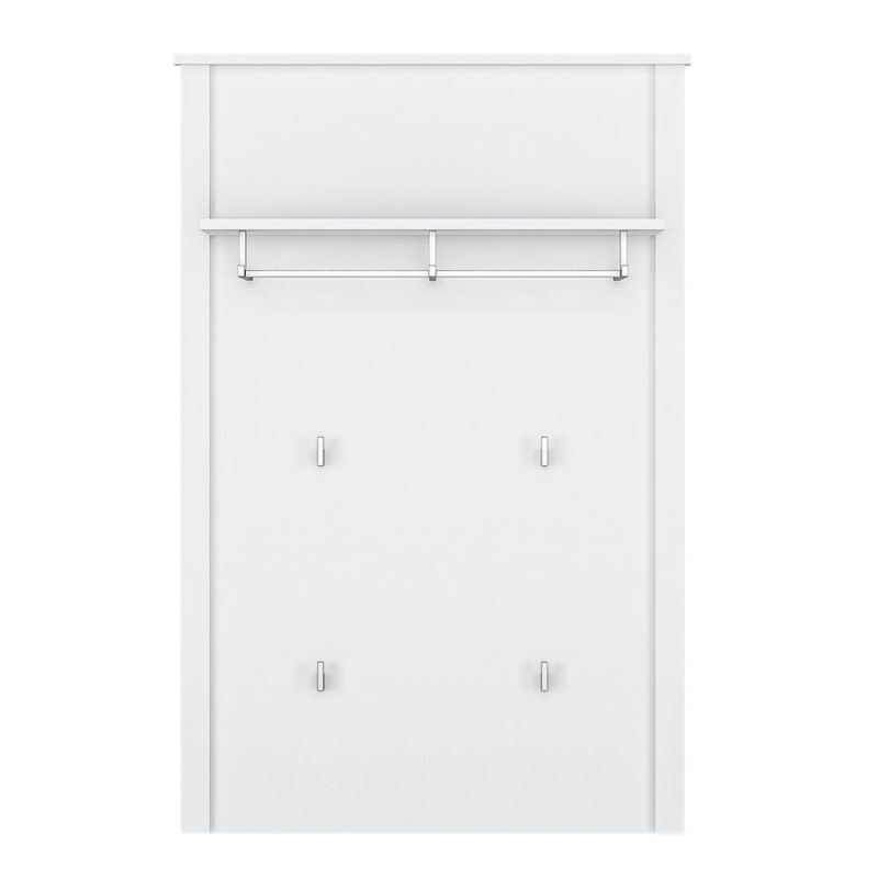 Vešiakový panel v čistom bielom prevedení je vyrobený z laminovanej drevotriesky s ABS hranami, ktoré zvyšujú jeho odolnosť. Panel poskytuje dostatok úložného priestoru na kabáty, bundy, čiapky aj šály. Súčasťou sú polica, vešiaková tyč a štyri vešiaky, ktoré z neho robia praktického pomocníka do každej predsiene