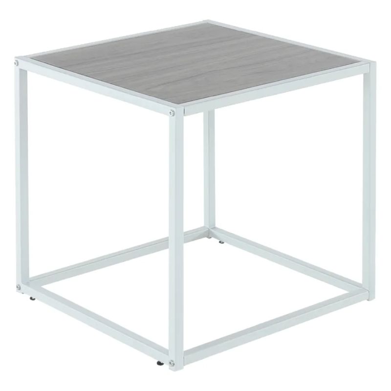 Kompaktný príručný stolík s jednoduchým dizajnom, vyrobený z kvalitných materiálov MDF a kovu. Kombinácia dubového efektu a bielych nôh dodáva stolíku svieži a moderný vzhľad, ktorý ľahko zapadne do rôznych interiérov