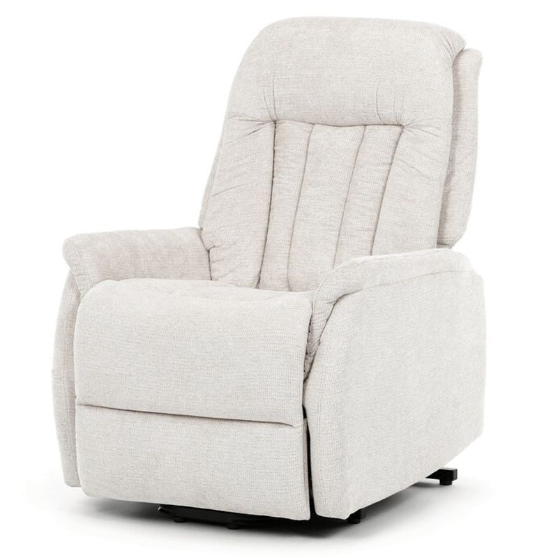 Kreslo je čalúnené kvalitnou béžovou látkou, ktorá je príjemná na dotyk a zároveň nenáročná na údržbu. Široké čalúnené podrúčky poskytujú pohodlnú oporu počas sedenia a integrovaný elektrický ovládací panel zabezpečuje jednoduché a tiché polohovanie. Praktická výklopná funkcia uľahčuje vstávanie, čo ocenia najmä seniori alebo osoby vyžadujúce vyšší komfort. Stabilná konštrukcia a moderný dizajn robia z kresla ideálny doplnok do obývačky alebo relaxačnej zóny.