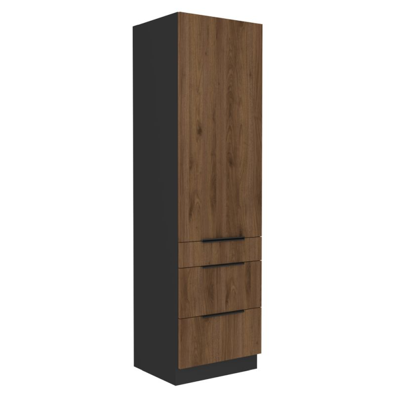 Vysoká skrinka, orech okapi-čierna, 60 DKS-210 3S1F, 1x dvierka, 3x zásuvka
