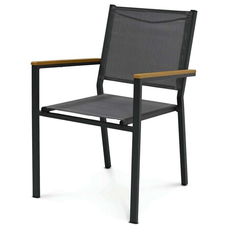 Sedák a operadlo zo sieťoviny sú priedušné, pohodlné a nenáročné na údržbu, čo oceníte najmä pri vonkajšom používaní. Polywoodové podrúčky dodávajú stoličke príjemný prírodný akcent a zvyšujú komfort pri sedení. Vďaka možnosti stohovania je stolička praktická na skladovanie a šetrí miesto mimo sezóny. Ideálna voľba pre štýlové a pohodlné vonkajšie posedenie.
