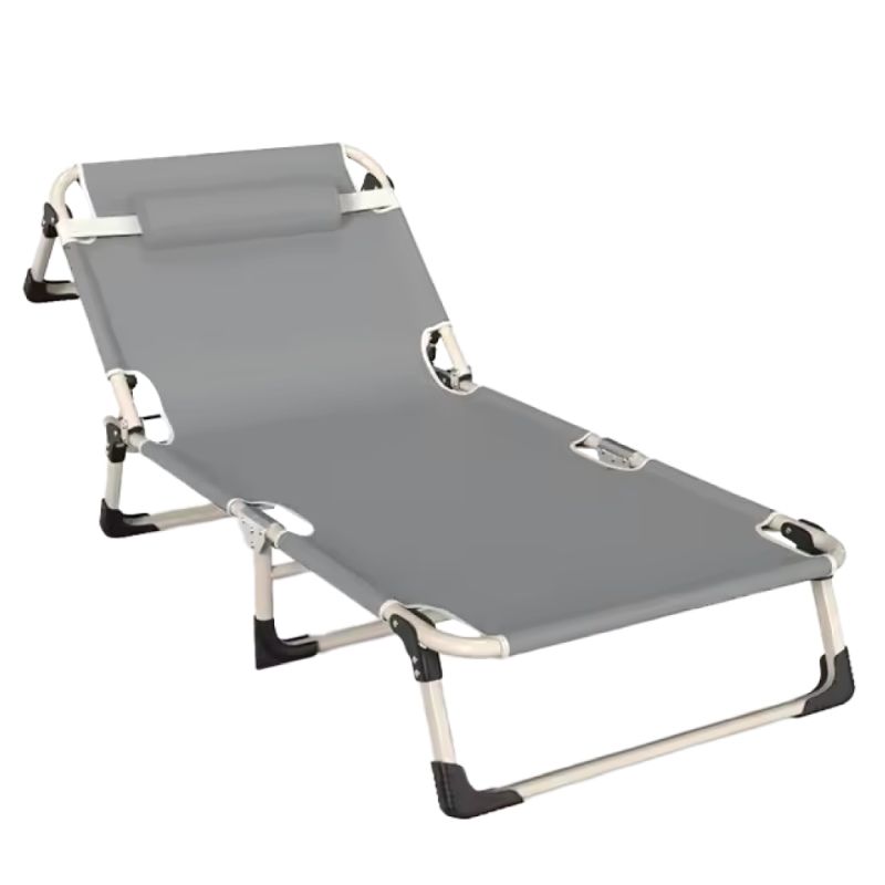 Skladacie záhradné lehátko s béžovou oceľovou konštrukciou a sivou vodoodolnou látkou Oxford prináša pohodlie, praktickosť a štýl pre relax na záhrade alebo pri kempovaní. Mäkká opierka hlavy zvyšuje komfort počas oddychu