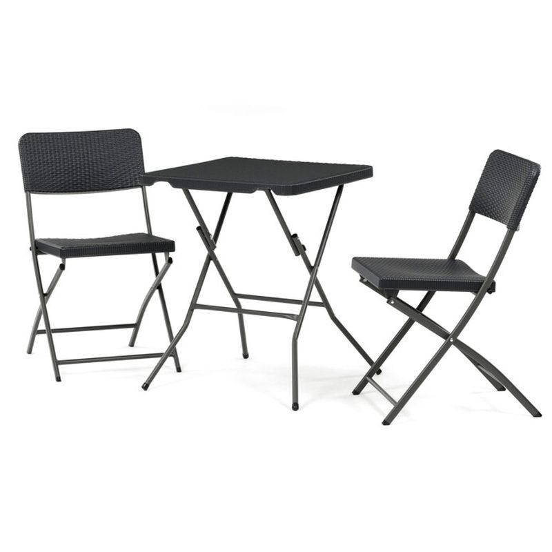 Stolík má plastovú dosku, ktorá je odolná voči poveternostným vplyvom, jednoduchá na údržbu a vhodná na každodenné vonkajšie používanie. Stabilitu zabezpečuje pevná kovová konštrukcia, ktorá zvyšuje pevnosť a životnosť celej zostavy. Skladacie stoličky umožňujú jednoduchú manipuláciu, rýchle zloženie a úsporu miesta pri skladovaní mimo sezóny.