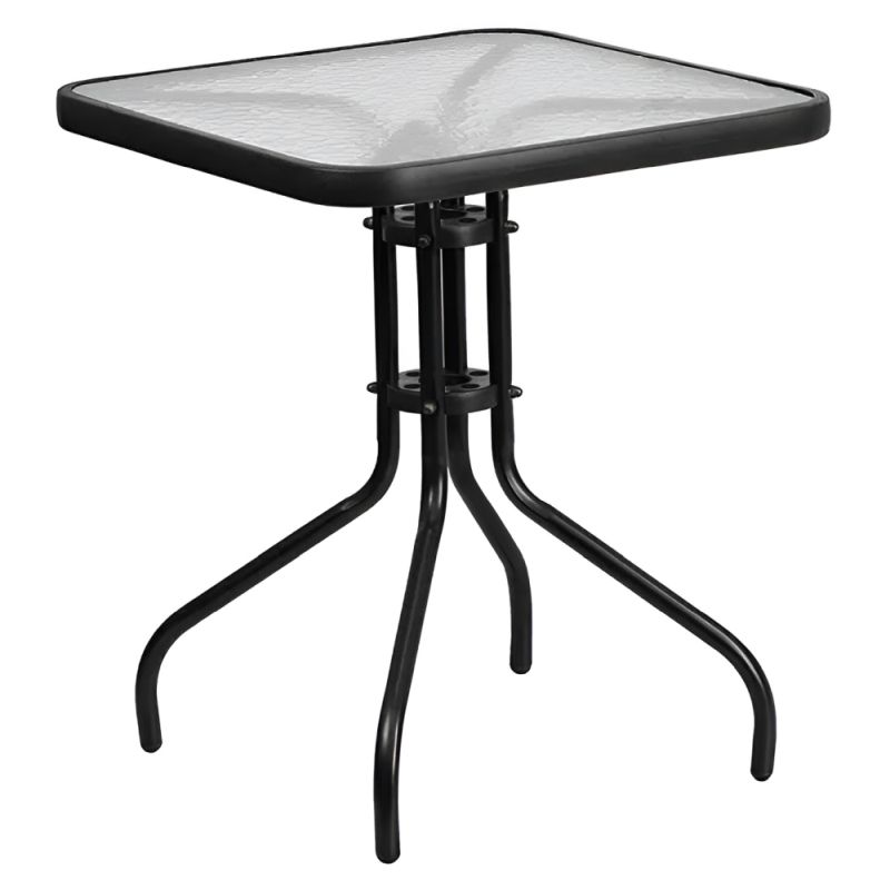 Záhradný stôl 70, čierna oceľ-tvrdené sklo