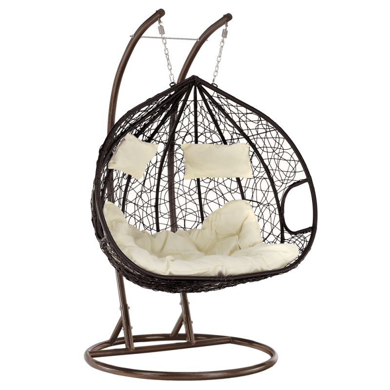 Závesné dvojkreslo s moderným dizajnom, medená-hnedá-krémová