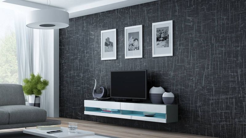 Závesný TV stolík model 180, ktorý elegantne kombinuje sivý matný korpus s bielymi lesklými prednými plochami. Tento stolík je dokonalým riešením pre tých, ktorí hľadajú moderný a štýlový nábytok pre svoju obývačku.